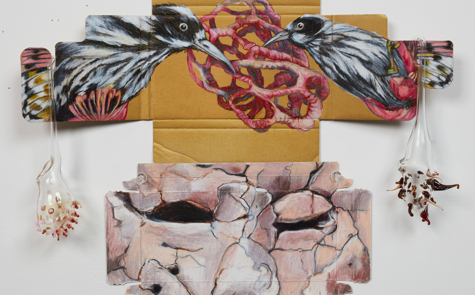 Tosca's practice, which encompasses painting, drawing and animation illuminates the dualities of existence; strength and fragility, the beautiful and grotesque, life and death. She was raised in a rural setting that nourished her communion with the natural world and with her training in medicine she possesses a sensitivity to our impact upon the environment, as well as nature’s place in our psyche. This complex relationship of the organic and human footprint often plays out in her compositions with what is mythical, bizarre or overlooked.
