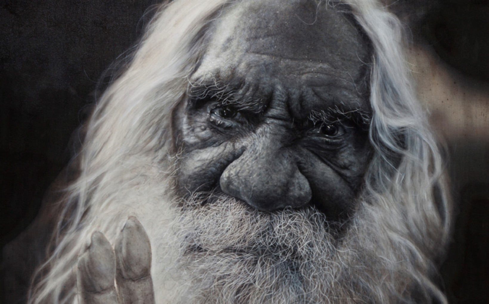 In 2015 Vincent Fantauzzo devoted much of his energy to painting and working en plein air. Several journeys into Central Australia fired his enthusiasm for landscape painting and for the first time he met the last of the nomads. In an ambitious project he painted large-scale portraits of Wentja Napaltjarri and Tommy Watson, Linda Syddick, Gloria Petyarre and Kudditji Kngwarreye as a series of triptychs—a monochromatic portrait of the artist focusing on the face and hands, a painting of their landscape displaying a sensitive and meticulous rendering of scenic detail and the third canvas would be painted by the sitter themselves in his or her own style.