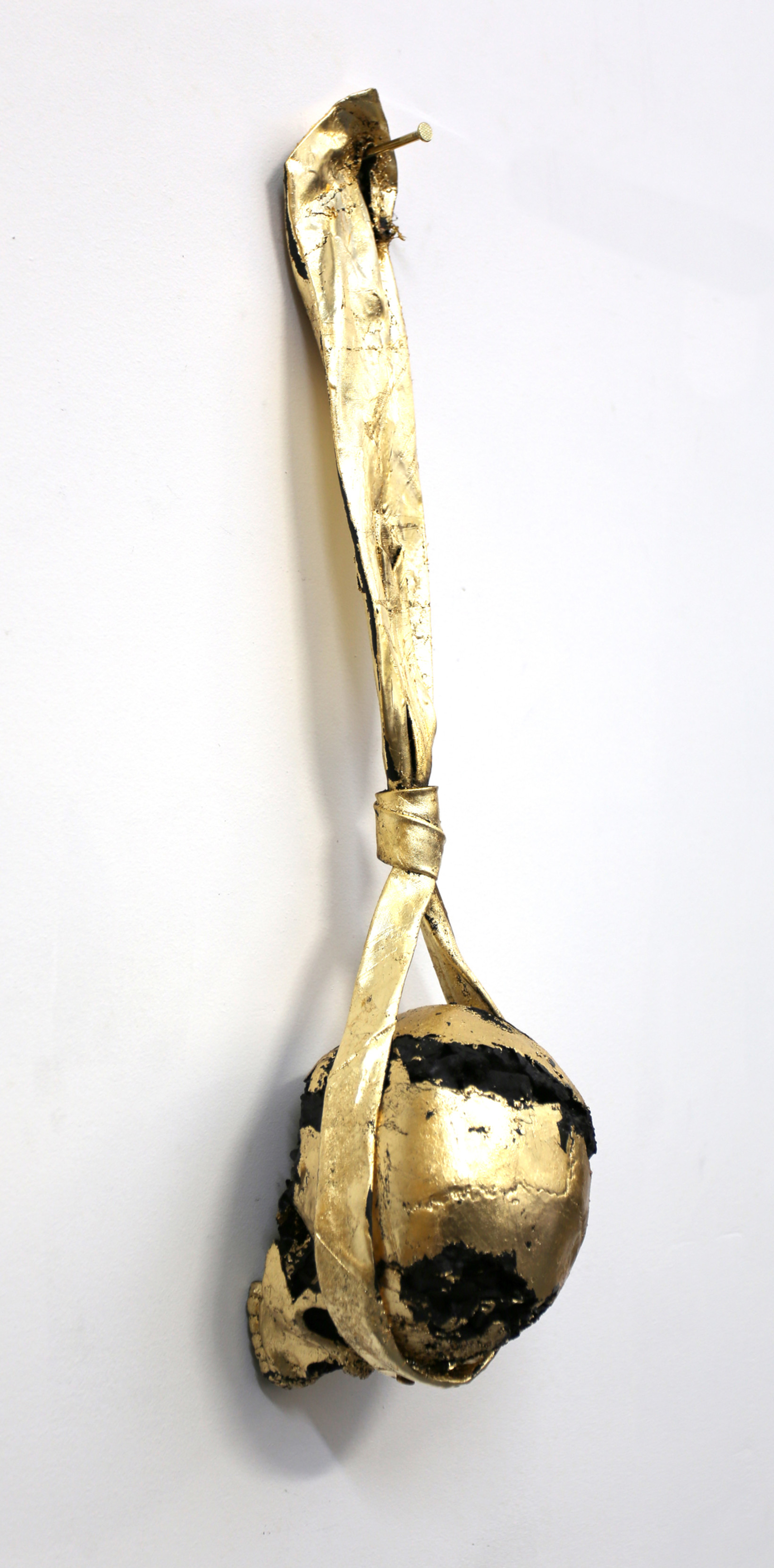 2015Coal, fabric, flock, gold leaf, pigment, resin and brass-plated nail67x17x16cm