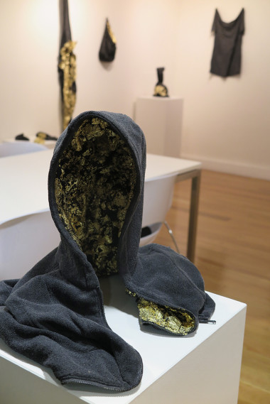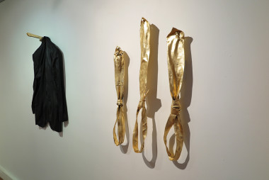 In this exhibition we walk through the carefully positioned objects of desire created from the detritus of our lives—once discarded and seemingly useless yet now valued with their veneer of gold and the sense of nostalgia they bring. These are the transmutations for our times.