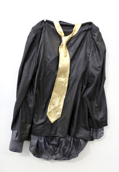In Black Gold no less a dimension than that of the alchemist may be detected—carbon-encrusted suits, the uniform of the financier—hang with the worker’s ‘hoody’ as metaphors of social status. Nailed to the wall or free-hanging on brass-plated meat hooks, Pratt does not sanctify or deride one side or the other.