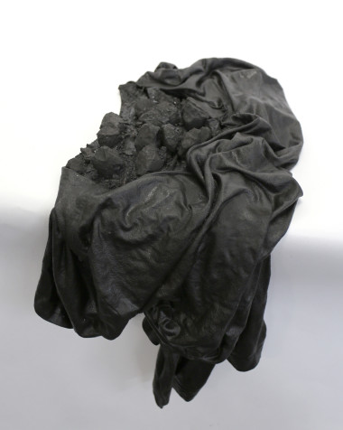 Pratt, however, is never turgid. His core message is conveyed with an element of levity and astringent wit. The natural world is an acknowledged co-creator in this exhibition. Lumps of black coal carved from the earth’s skin for the basis of much of the work are coupled with harnessing the use of gravity, the all-pervading force of the natural world. Pratt uses gravity as a tool in the sculpting process, hanging objects while they set, sometimes at 30 degrees, sometimes at 90. In the rising and slumping quality of Dollar, Dollar, for example, he also alludes to the forces at play in our economic system.