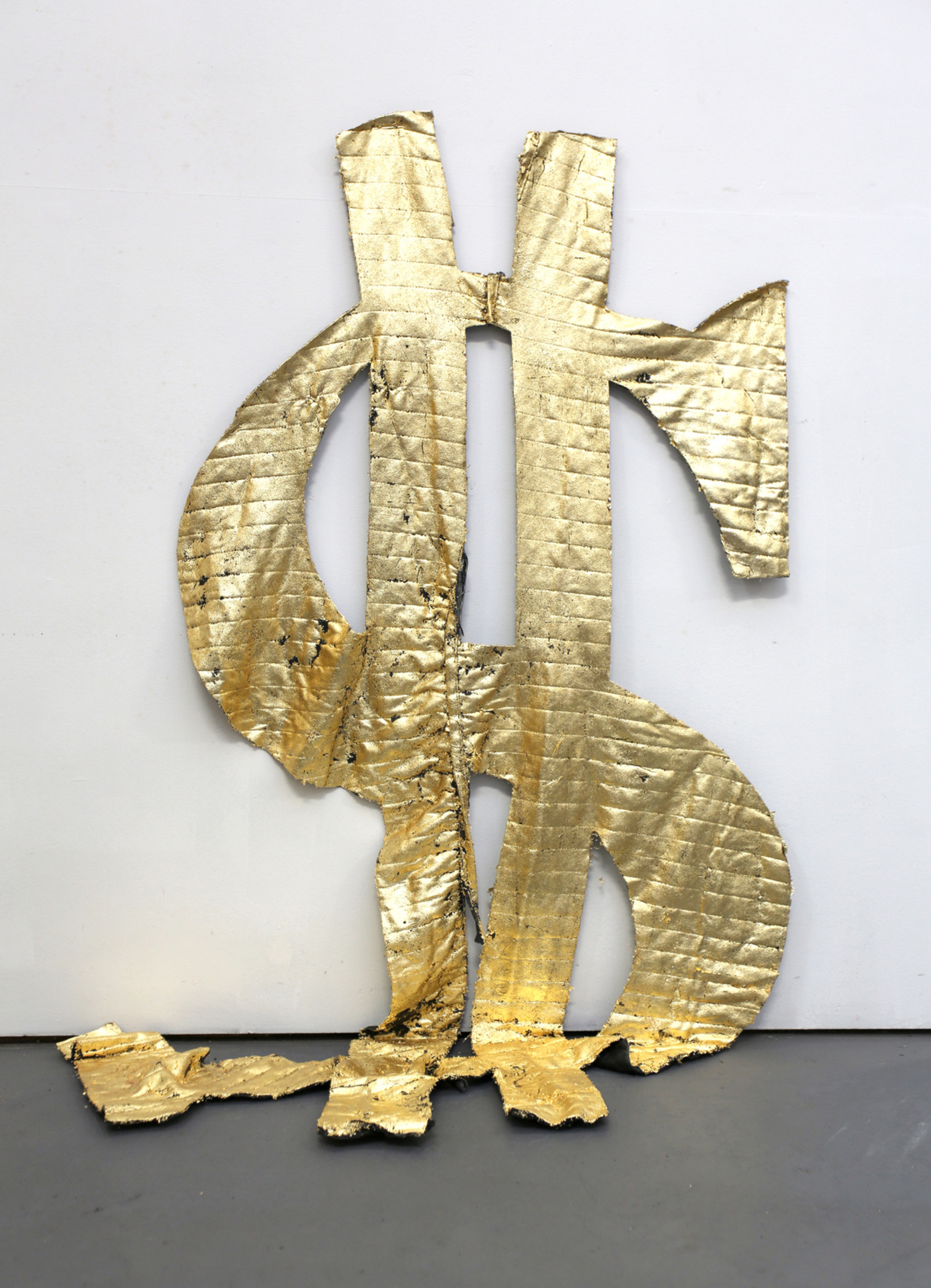 2015 \ Coal, fabric, pigment, resin, brass-plated knife and gold leaf \ 90x59x21cm