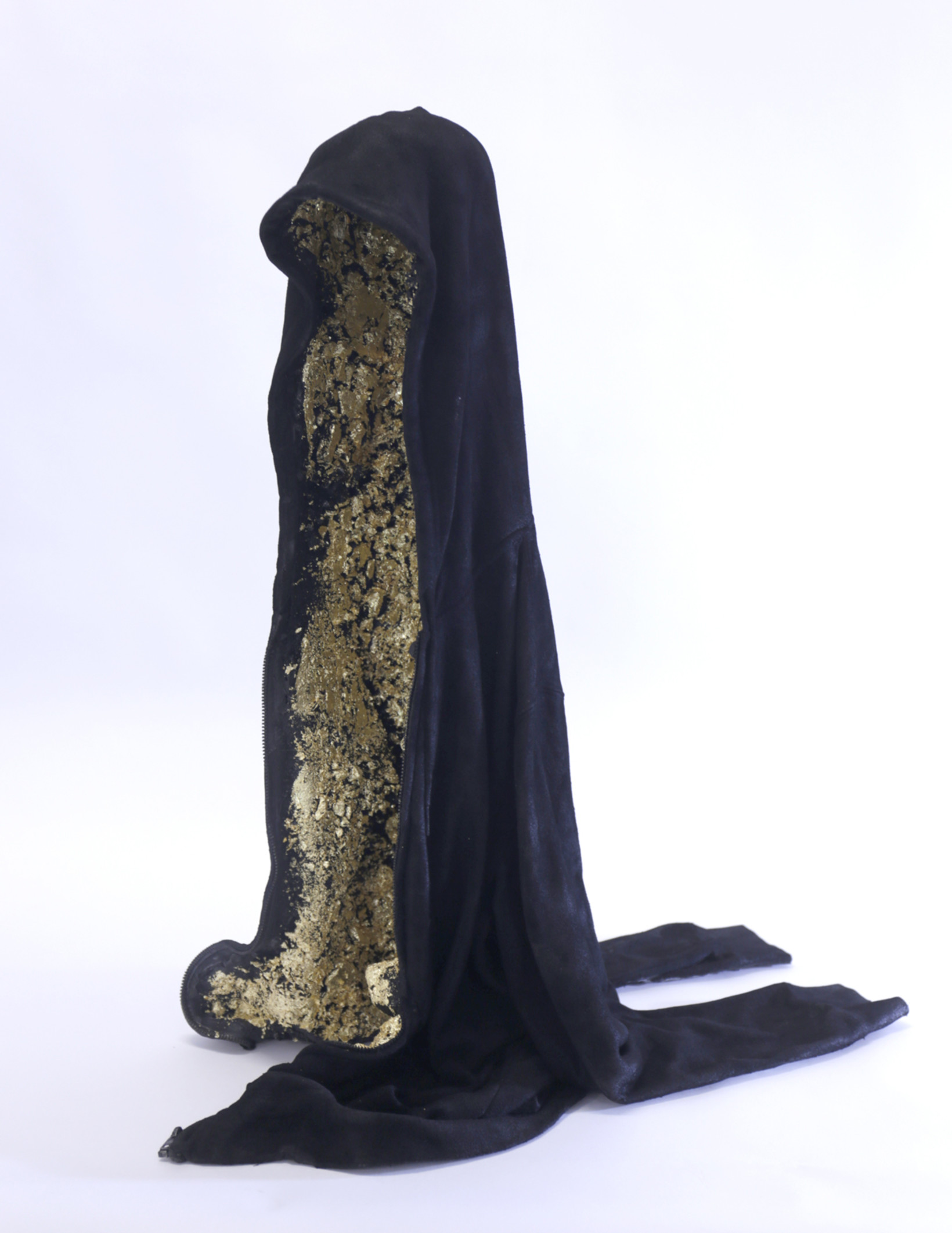 2015 \ Coal, fabric, flock, pigment, resin and gold leaf \ 81x37x68
