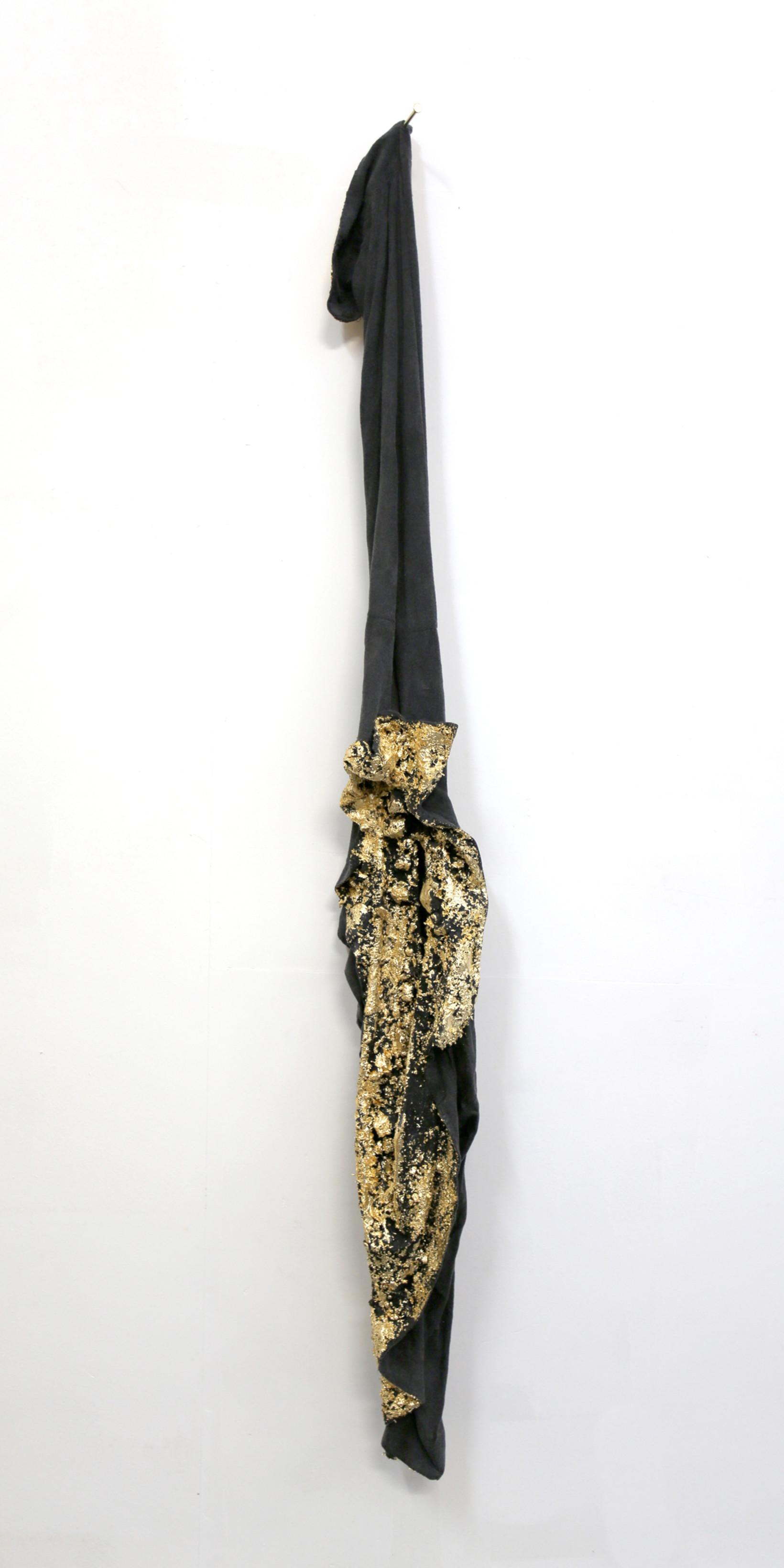 2015 \ Coal, fabric, gold leaf, resin and pigment with brass-plated nail \ 81x24x17cm