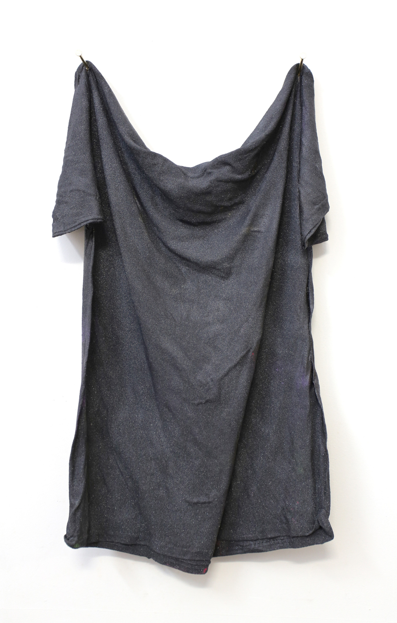 2015 \ Coal, pigment, abrasive material, resin and fabric with brass plated nails \ 81x45x7cm