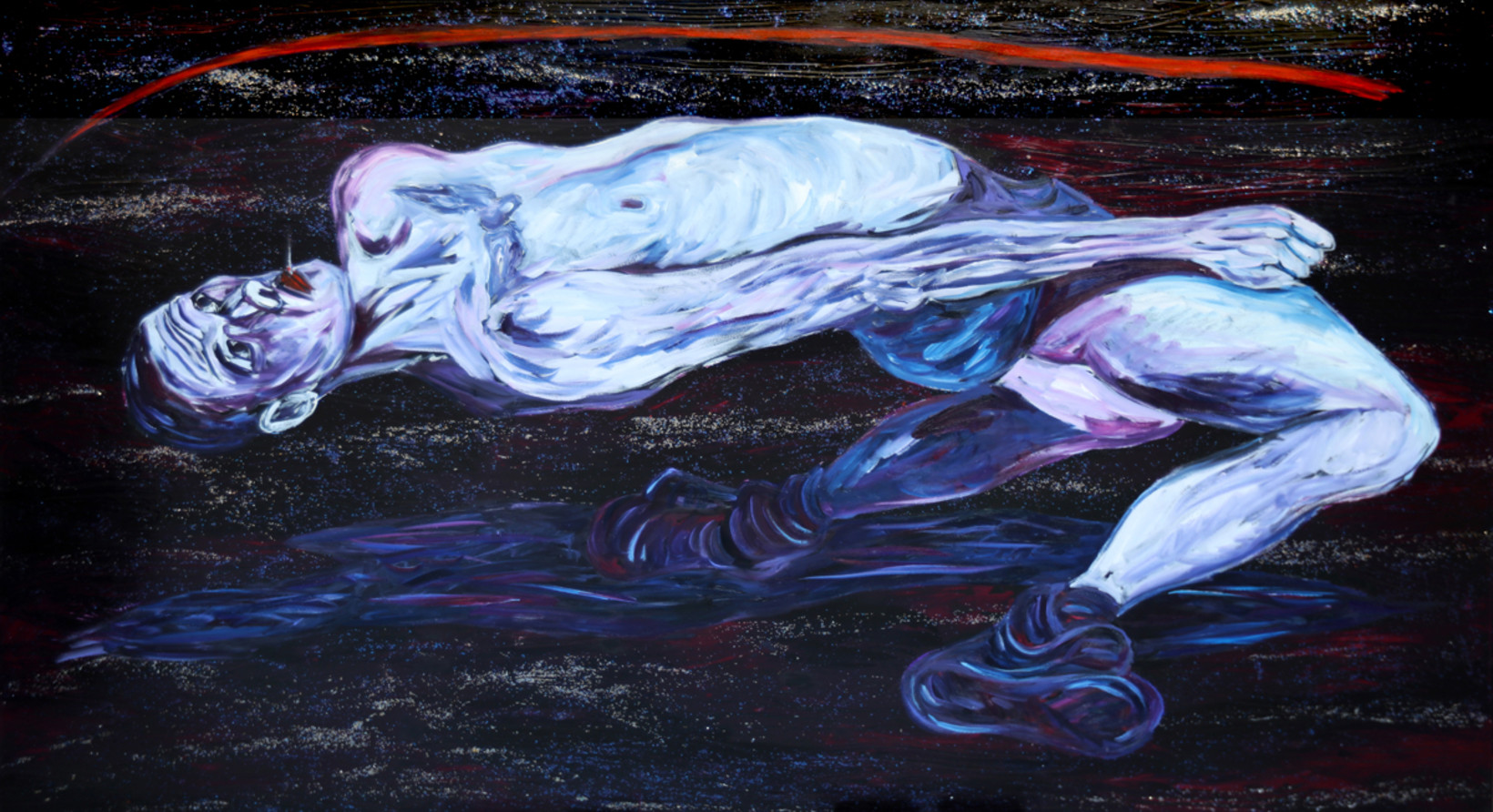 2017 \ Oil, clear varnish and automotive metal flakes on canvas \ 198x102cm