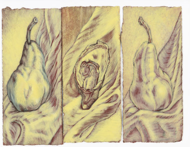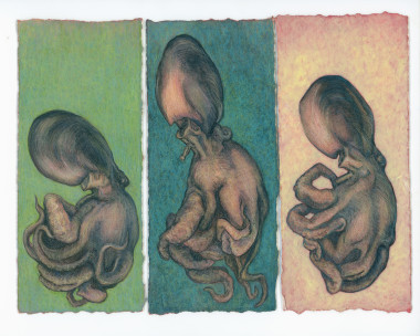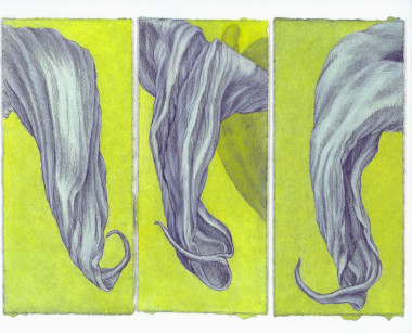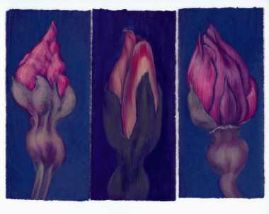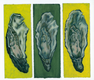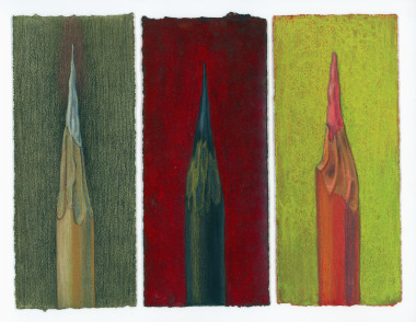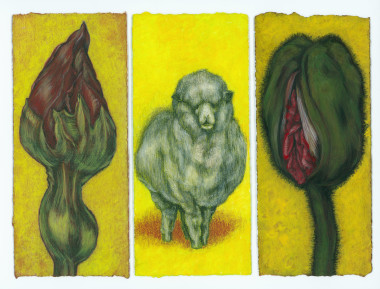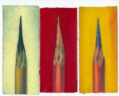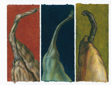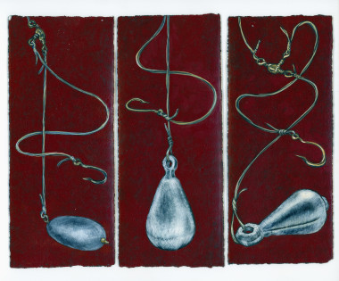 Each triptych in the series functions like a stanza: a visual refrain that echoes, amplifies, or playfully distorts the written word. Spooner’s long-standing practice of coupling literature and image finds new expression here. Each bookmark acts as an autonomous visual meditation, suspended between memory and commentary.