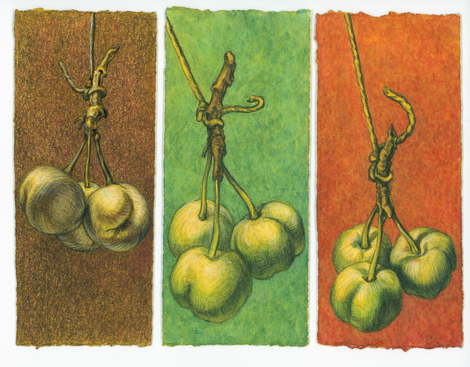 Watercolour gouache and conte chalk on cotton paper