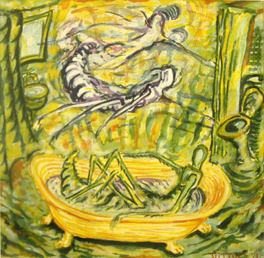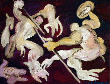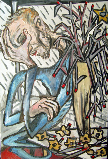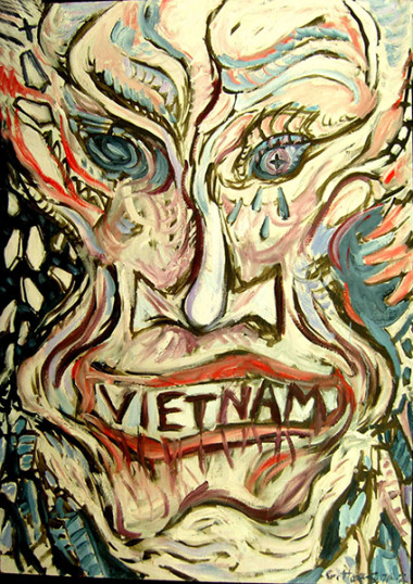 The Yellow House period oils (1970-71) are on themes of inner and outer contemplations/influences at that time on the twenty-year-old artist—his hero, Vincent Van Gogh—troubled by inner strife, enlightened by intense visual sensitivity, dedicating a life to art—and the Vietnam War: which troubled the artist’s generation deeply, and made them question war.