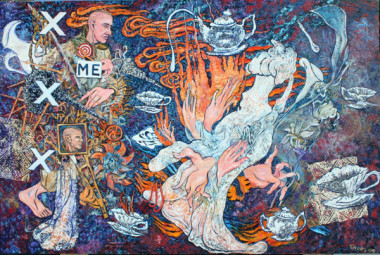 This exhibition features previously unshown major oil works, from the artist’s studio, and a selection of smaller oils, and drawings where key Gittoes icons are explored – the Night Vision character, artist self-portraits, the 'three cups of life' theme, and the few remaining works from his 1998 China residency.