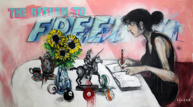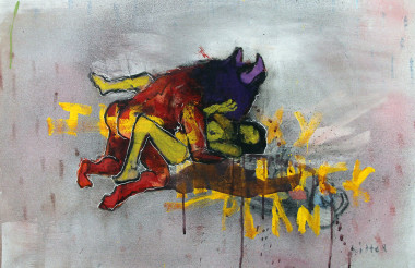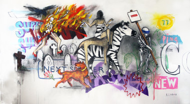 Sydney is the cauldron of witchcraft, with a pinch of creative criminology and endless outpourings of identity displacement and countless freaks and geeks without a cause, even the homeless adore Lister for adding to their skyline and ceilings—some fantastic things to look at from the gutter. Lister pours his paint over the places the public poor inhabit, Sydney is an enfant terrible’s playground where crime intercepts with crooked cops as a respected way of life, where he makes the ordinary become extraordinary with just a roller, spray-gun and the gift that Banksy described as “you appear to piss great art in your sleep”.