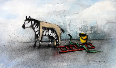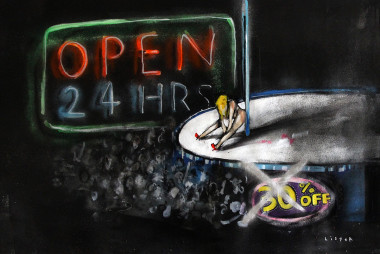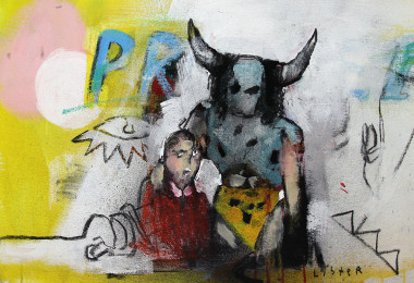 Lister has uncovered the dark mythology hidden under the Westfieldian plains, from the horned man of the ashes of Luna Park where Martin Sharp roamed for a while, where sniffer dogs nuzzle women’s crotches in search of drugs while the importers dine in mansions sublime, with bankers and merchants on harbor side balconies, their purchased wives laid out ‘like patients etherized upon a table’.