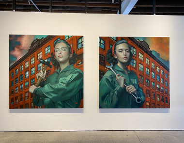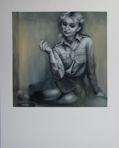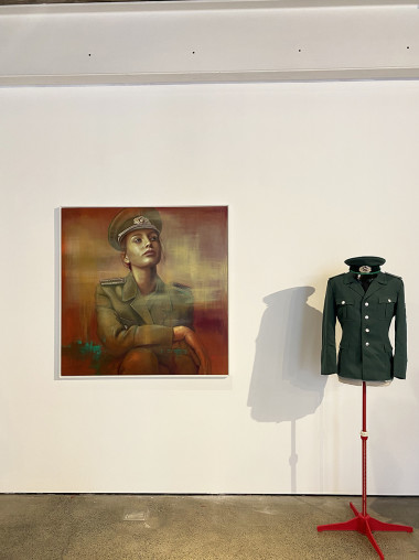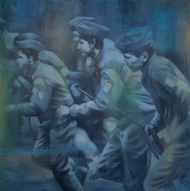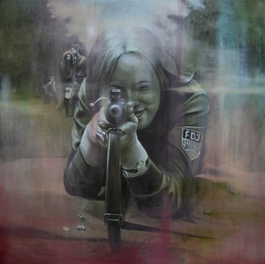The detritus of the autocratic symbolism that pervaded all corners of her childhood, informs Longhurst as a contemporary painter. In Indoctrinated, Longhurst draws upon her upbringing, delving into her personal family archive while morphing memories of school camps run under military protocols and classrooms where counting was taught by adding and subtracting tanks and soldiers.