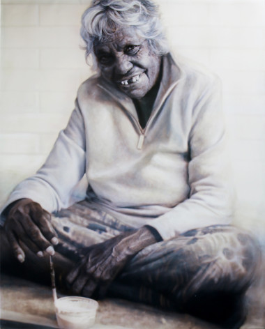 Fantauzzo commenced an ambitious project to paint a series of portraits of the last of the desert artists who had at one time lived a nomadic existence far from the modern world. His journey will also become a film. Immersed in the everyday world of the old painters, he watched Wentja Napaltjarri and Tommy Watson paint their large meticulous canvases. He spent many days with Linda Syddick, Gloria Petyarre and Kudditji Kngwarreye mixing paints for them and documenting not only the people portraits, but the internal artistic fire that drives them to continue to create for us all.