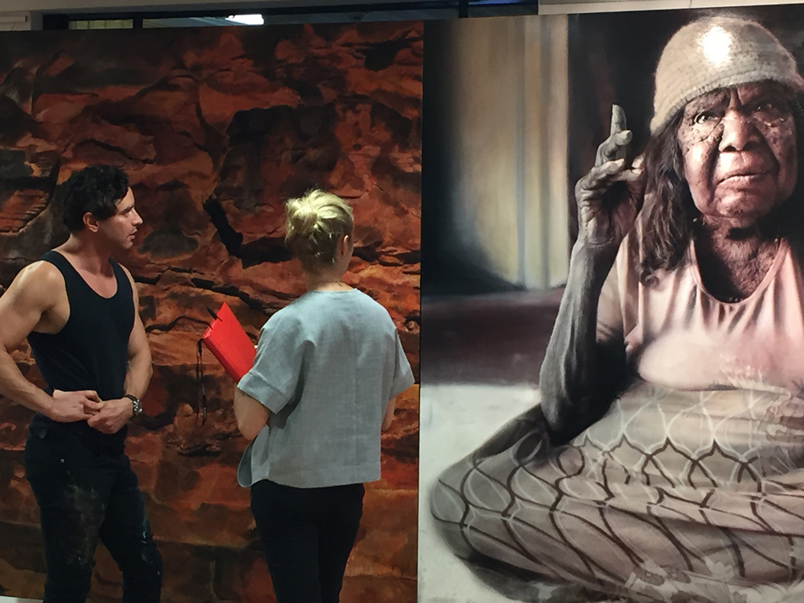 \\ Vincent Fantauzzo with Yannima Tommy Watson triptych