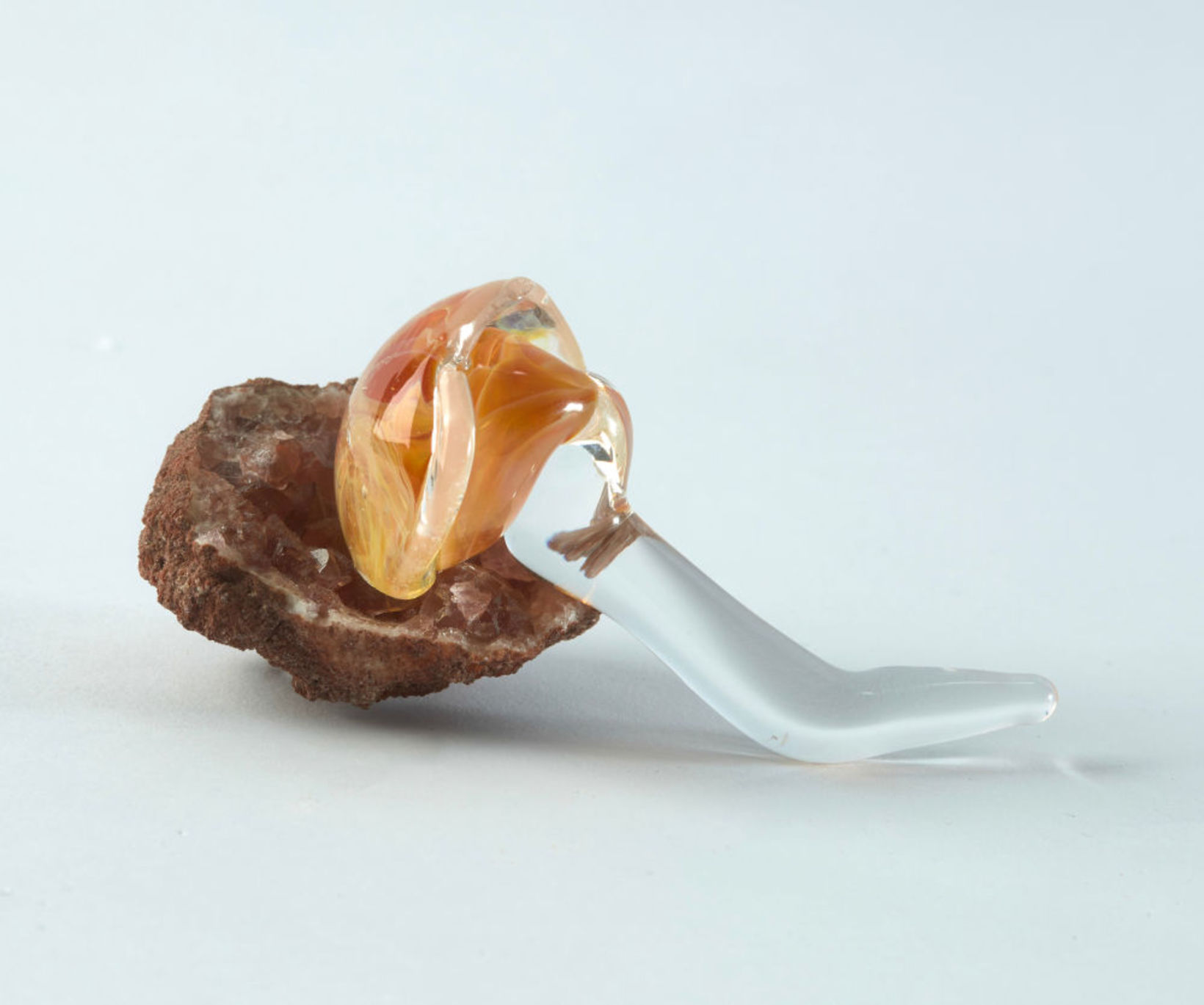 2024-25 \ Borosilicate glass and amythyst geode \ 3 to 5cm long dimensions variable