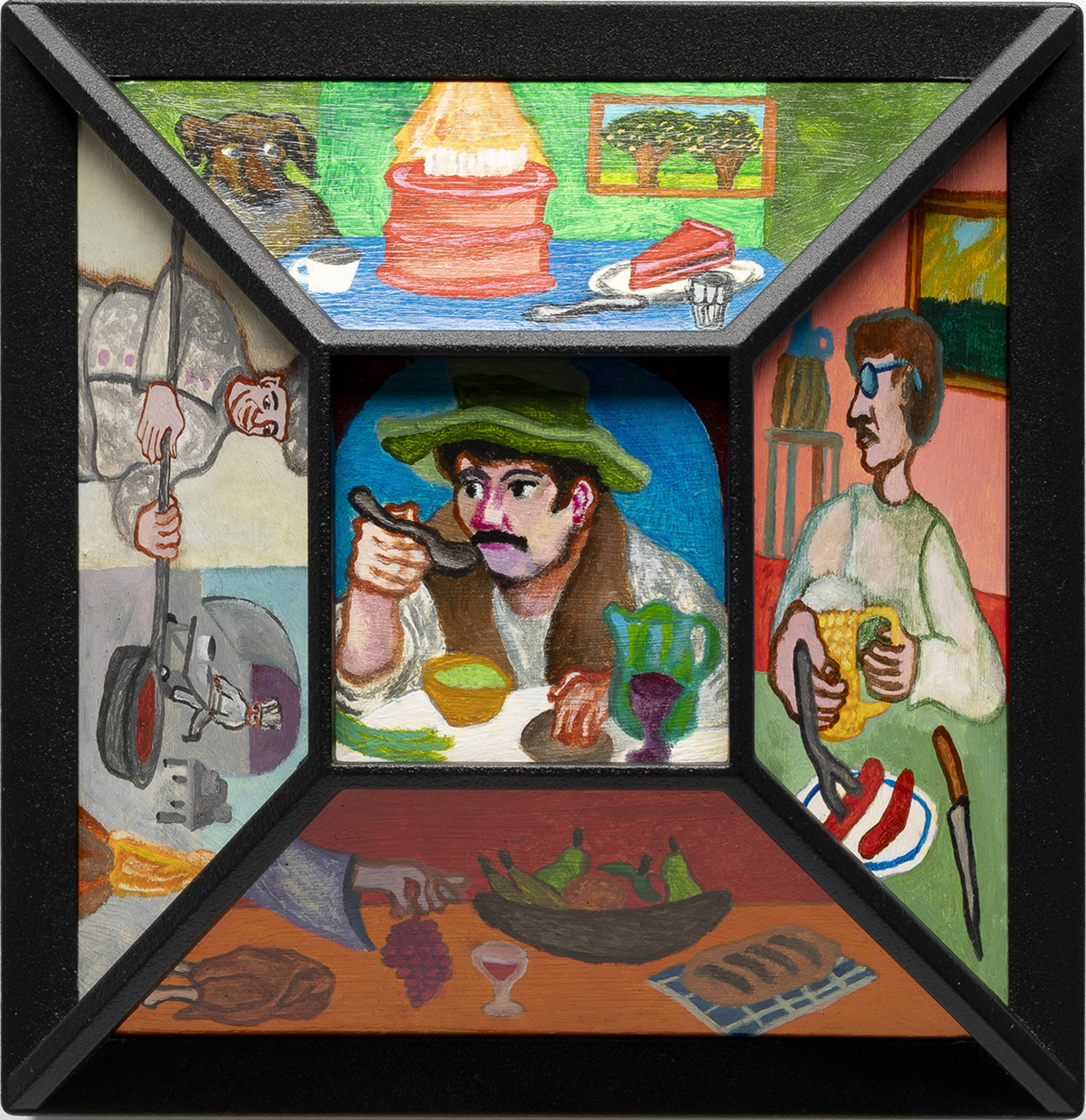 2025Synthetic polymer paint on plastic and metal 19 x 19 x 7 cm