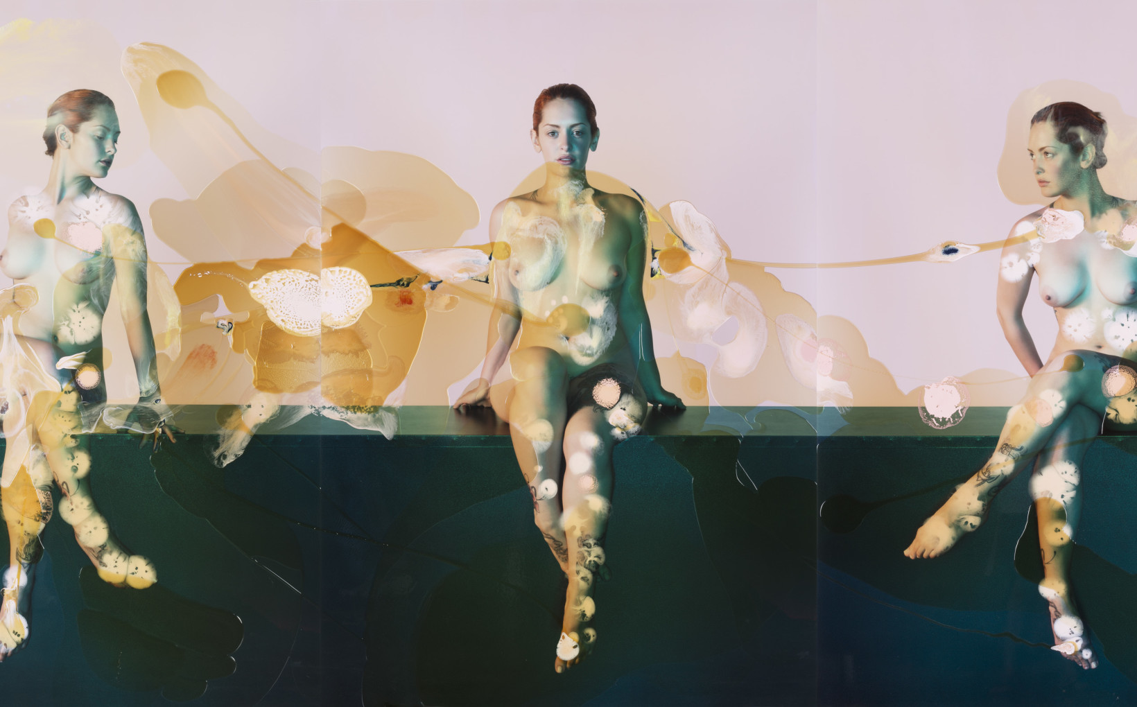 For their masterful triptych, Playing God (2015), the Doctors have borrowed the structure of Francis Bacon’s 1969 masterpiece Three Studies of Lucian Freud. The unblemished perfection of Uma Thurman in Gattaca (1997) is reflected in this triumvirate of beauties, which are linked by moist membranes.