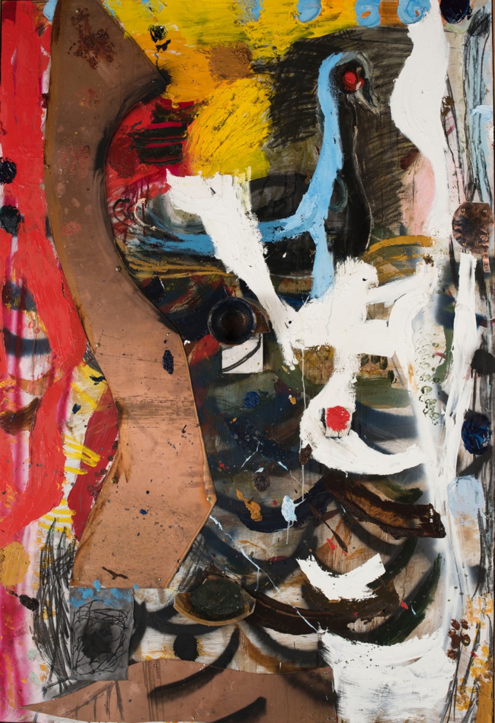 2017 \ Oil, copper, brass, charcoal and studio debris on hardboard \ 140x122cm