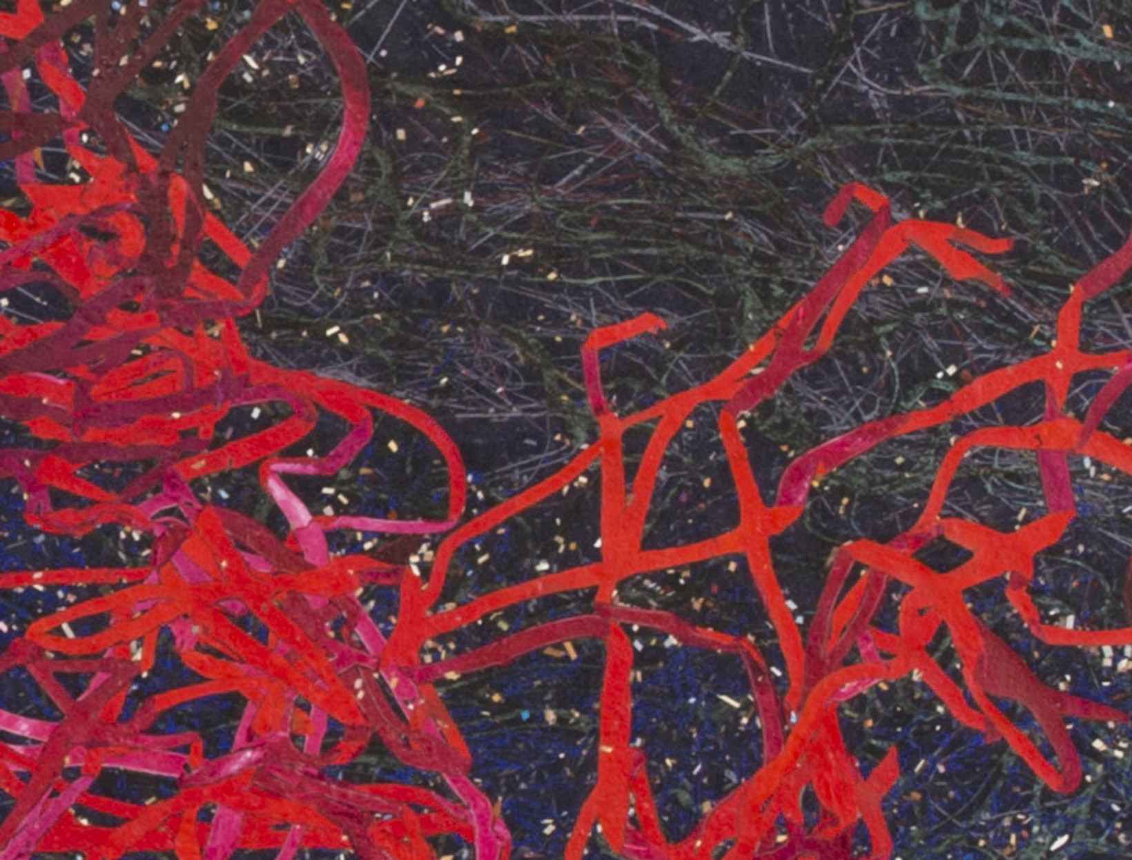 2017 \ Acrylic paint, pastel, colour pencil on layers of silk and paper \ 150 x 271cm