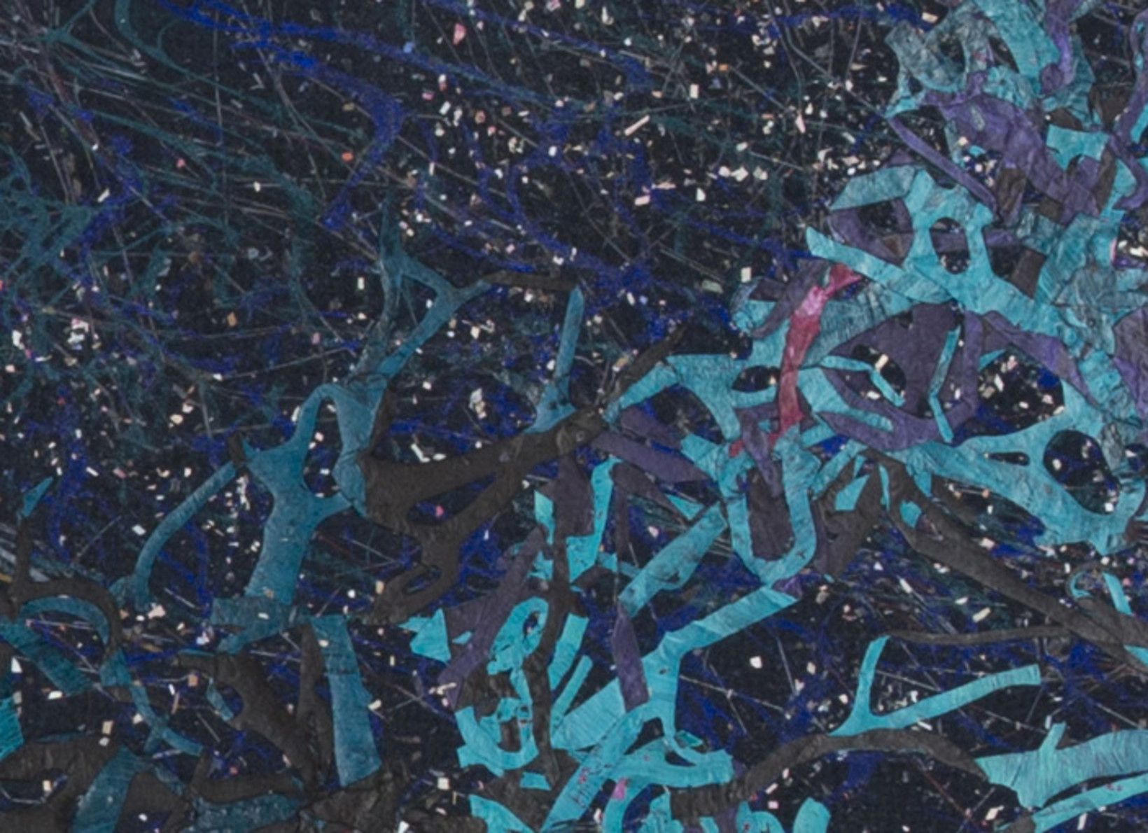 2017 \ Acrylic paint, pastel, colour pencil on layers of silk and paper \ 150 x 271cm