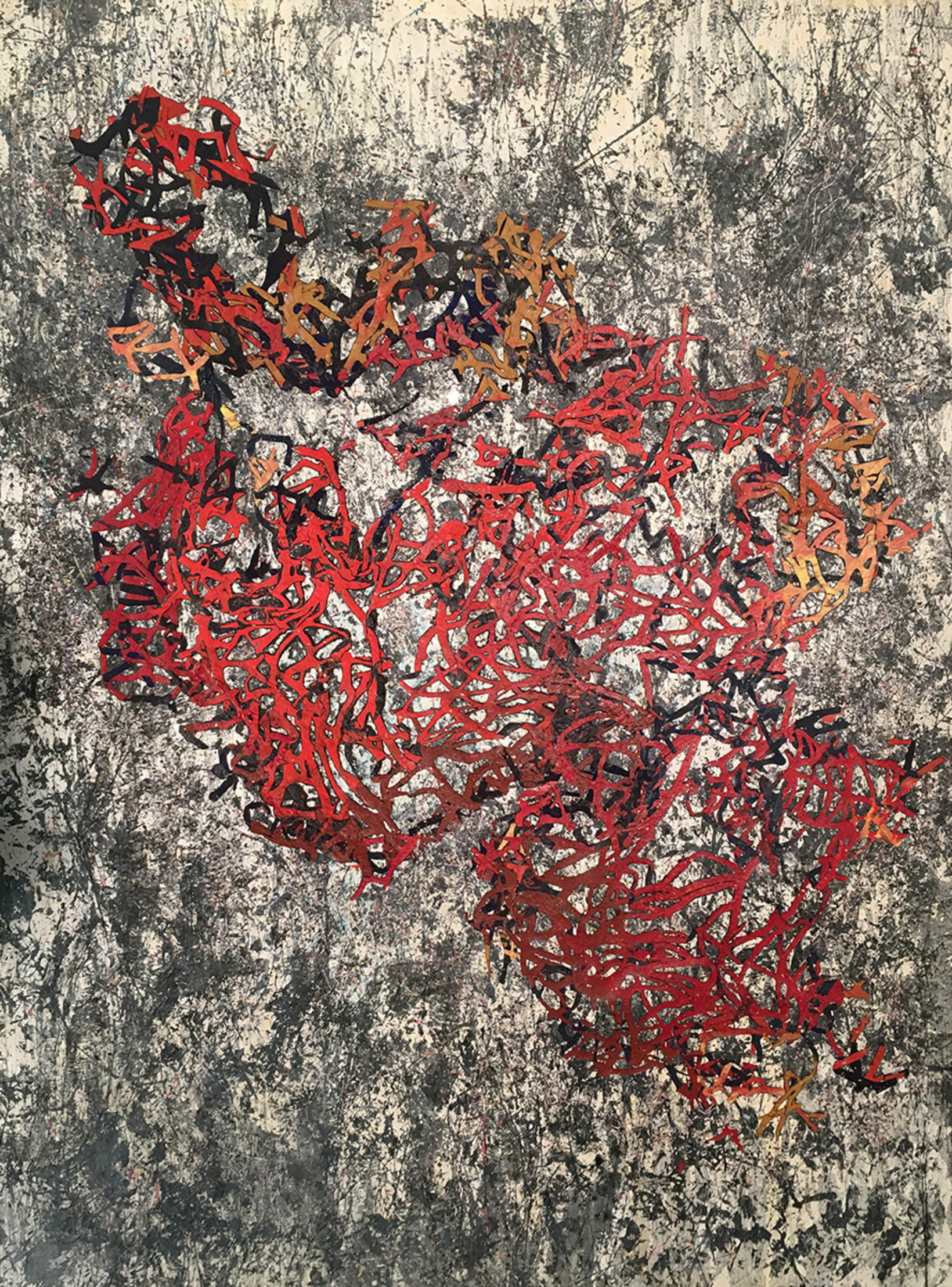 2017Acrylic paint, pastel, colour pencil on layers of silk and paper125x97cm