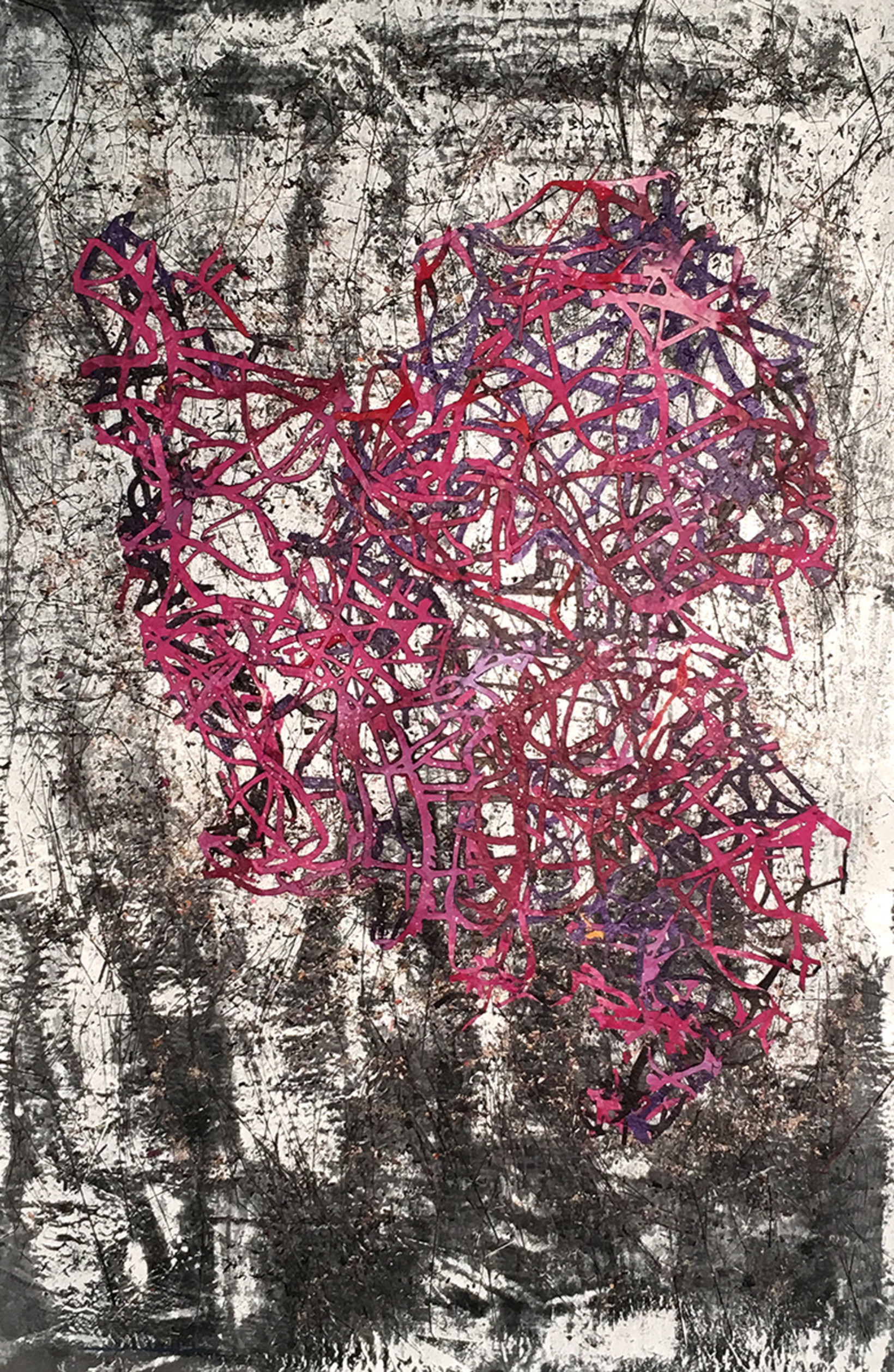 2017 \ Acrylic paint, pastel, colour pencil on layers of silk and paper \ 150x241cm