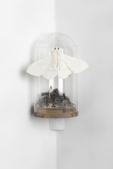 This exhibition, The Gentleman Farmer, is an all-encompassing installation created for the Nanda\Hobbs project space. It is a body of work that is powerfully the sum of all parts—paper sculptures, placed within constructed landscapes, that tap into the artists’ concerns while maintaining a deeply harmonised aesthetic resonance with the audience. The imagery within the individual works encapsulates the essence of a contemporary social sublime. Each work is self-contained, with its own story and visual feel, yet inextricably linked to the whole.