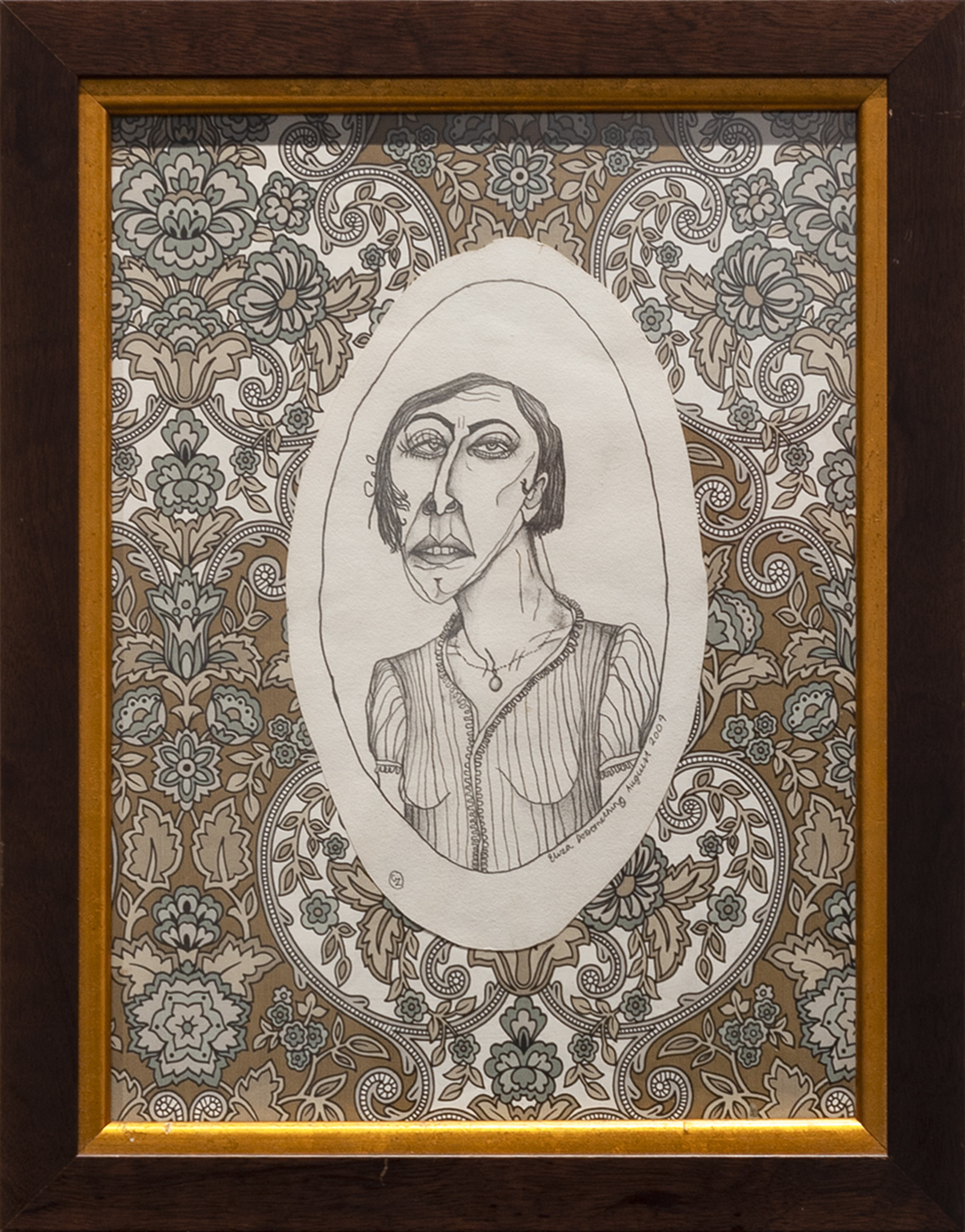 2004 \ Pencil, 1943 wallpaper on oval card with gold frame \ 52 x 35cm framed