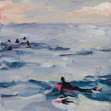 There are many references from the history of art that Emdur’s work can be linked to. Certainly, there is a strong realist influence, albeit a subliminal one. The use of light and dynamism with her methodology are inherent traits to her practice. Of profound importance to the artist is her spiritual connection to the subject—not only the environment but the protagonists. There is a joy to her message—she is connecting with us, as the subjects of her paintings connect with the ocean.