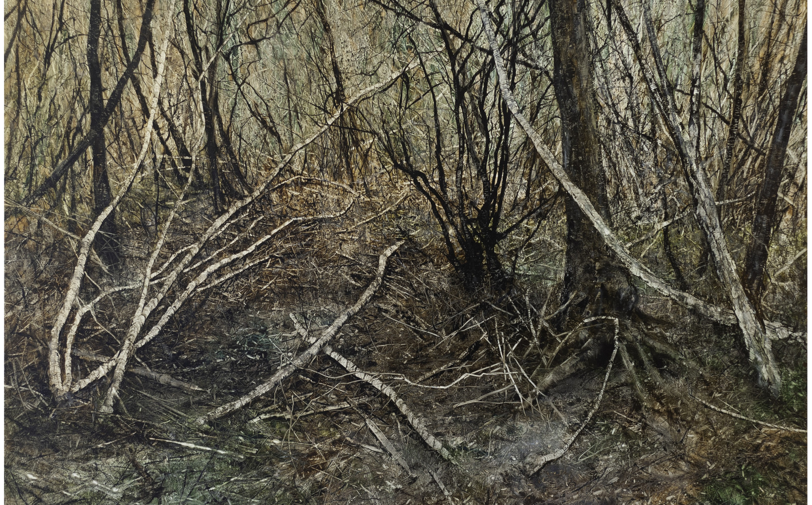 In recent years Blowers' monumental paintings inspired by man's intervention on the west coast of Tasmania have been praised by collectors and curatorial prizes alike. This powerful work has just returned to the market and is an exquisite example of his earlier tangled landscapes - evocative and mysterious.