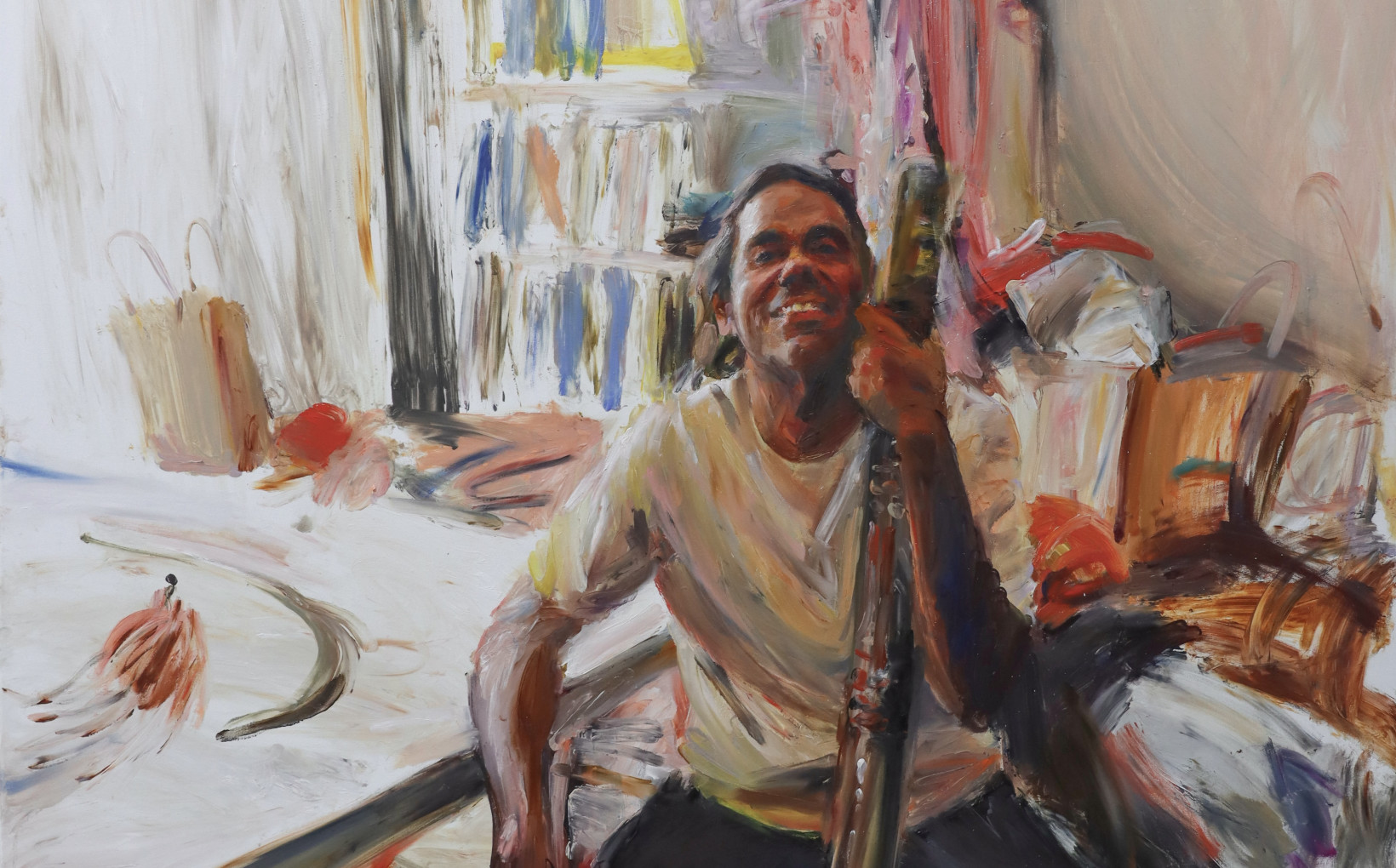 Titled simply "Finger painting of William Barton", the portrait captures the acclaimed Kalkadunga man and yidaki virtuoso in a moment of still contemplation. Created with her fingers due to a long-term injury that has impacted her ability to hold a brush, the painting is both a technical and emotional triumph.