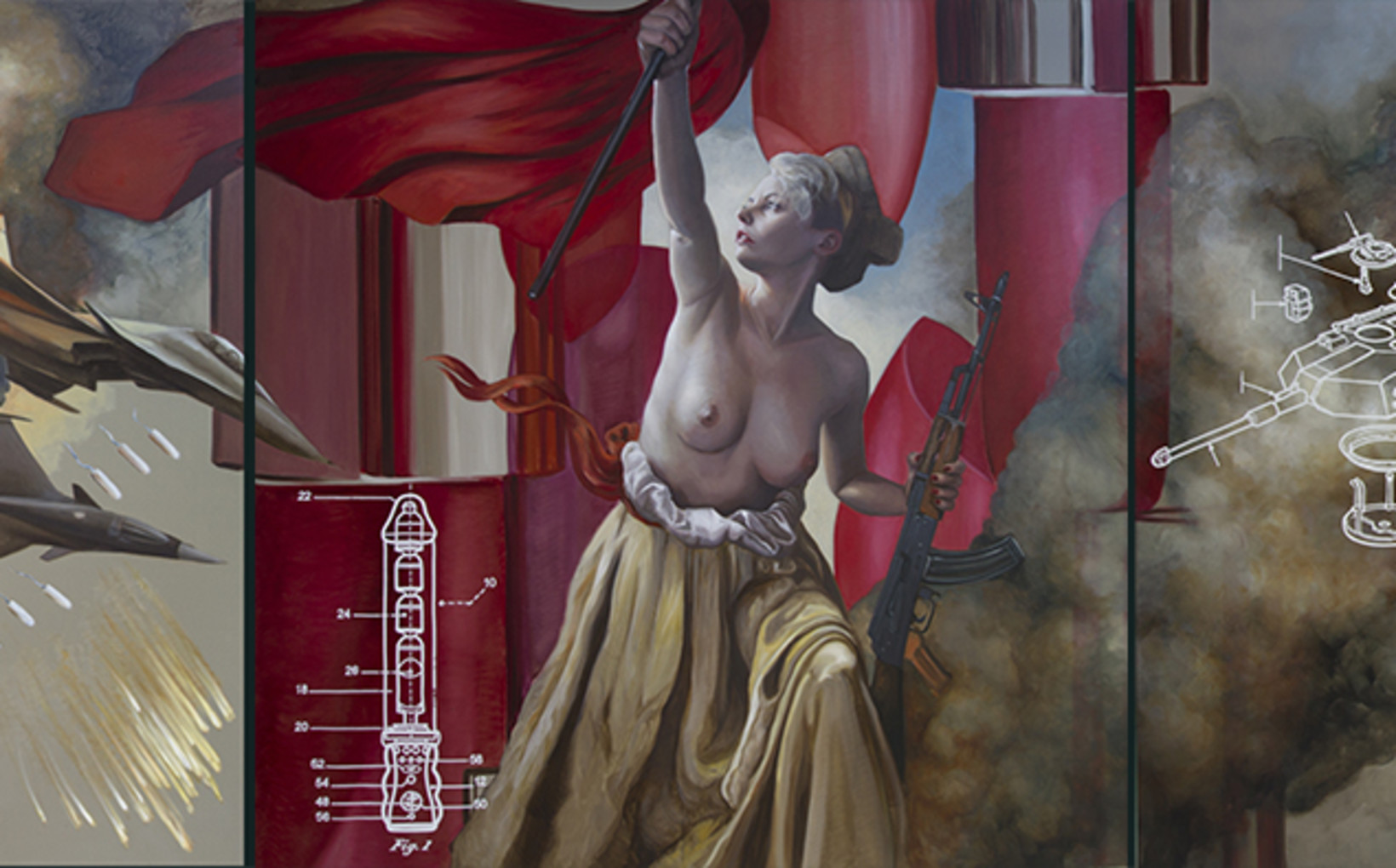 Titled "Ode to Feminism", the oil on canvas (triptych) measures 180x540cm. View full image HEREtive realism.
