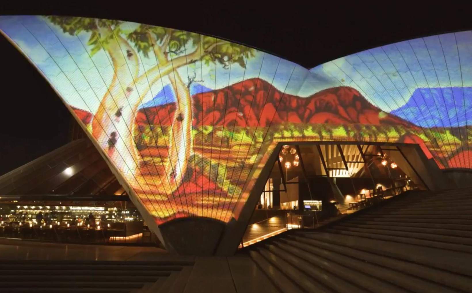 The second edition of Badu Gili was premiered at the Sydney Opera House on July 24. Artworks by six Indigenous artists, including Western Desert watercolourist, Mervyn Rabuntja will illuminate the sails of the Opera House for 12 months - at sunset and 7pm each day.