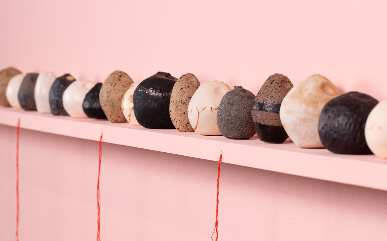 Restraint is an exhibition about the feeling of what one sees. This exhibition is the sum of its parts: a long line of ceramic vessels, each individually shaped by the artist’s dexterous fingers. The shifts in tone and texture speak to an awareness of the importance of differentiation in a world where homogenisation is supreme.