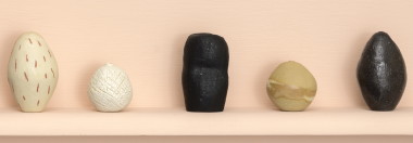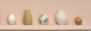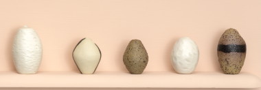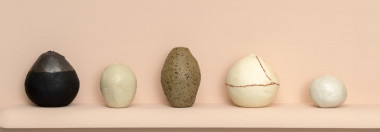 The ancient world has been a constant for the artist. Recognition of an object’s raw, handmade quality—when the maker’s hand was still evident—was intrinsic to creation. The pressed dimple in each of her vessels is a nod to a heritage that predates the written word. It is also inherently human. Small in scale, these works possess a sense of humanness—there is a sensuousness to the form, curved and moulded.